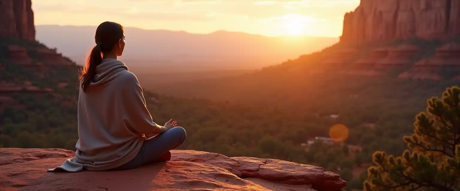 Picture yourself seated on ancient red sandstone as the first light of sunrise moves across Sedona’s red rock formations. The desert is quiet. Your breath slows. Meditation no longer feels…